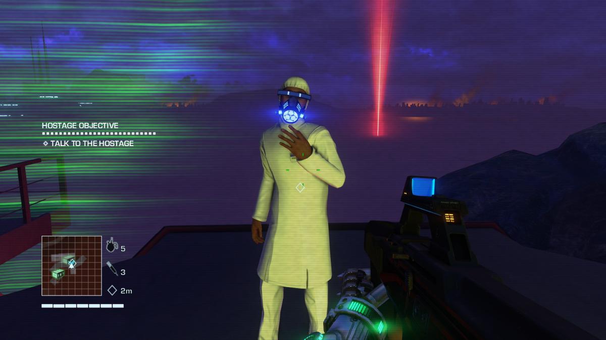 遊戲整體充滿 B 級電影的風味,為了符合當代 VHS 影帶風格,從遊戲畫面、那年代描述下的近未來建築(滿滿的霓虹燈!)到背景音樂皆特別細心打造成濃厚的 80 年代影視風格。硬要說這風格有什麼缺點的話,就是看久了眼睛會有點痛,因為遊戲畫面上光暗的對比非常強烈,一片血暗色的小島滿是閃著霓虹燈的基地建築看久了真的有些視覺疲勞。