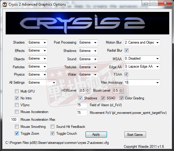 (作者網站:Crysis 2 Advanced Video Options Version 1.6 Released!)