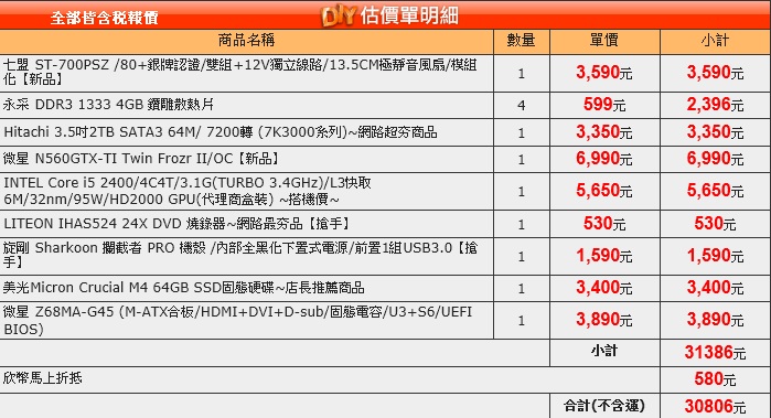 像他這樣從零到有,兩萬多是如何裝配(win7 64位元有加購進去??)