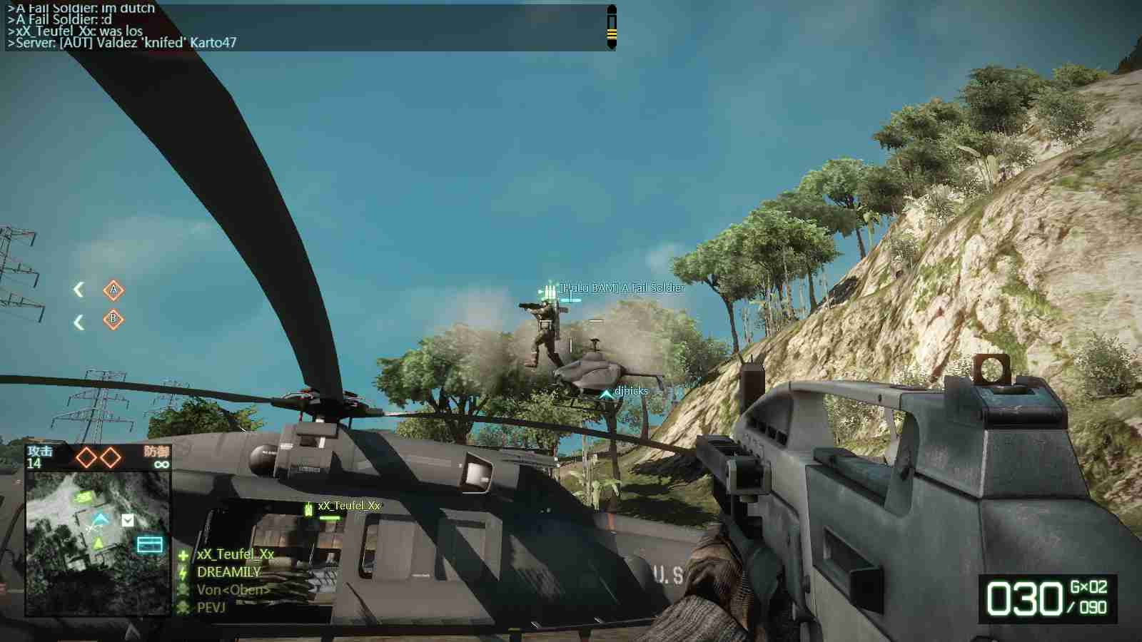 3.最陰險就這招了 等直昇機背向著你 跟你的隊友一起射他屁屁.我敢寫包單他絕對回家修理