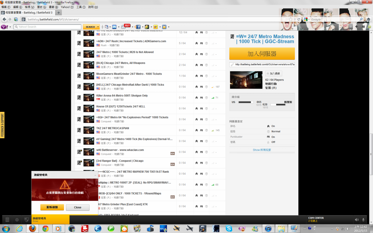 既然這樣我就自己跑去GOOGLE,BF3的網頁我直接點進伺服器跑一下跑一下突然出現這樣