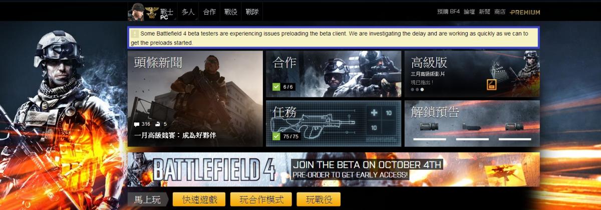 剛剛下載完BF4 Bate 上去 battlelog 8掛一下就看下面圖片上信息